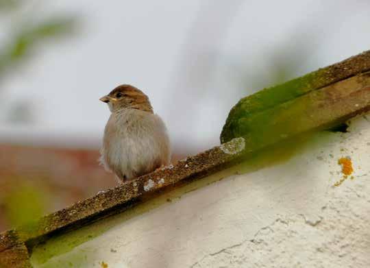wake they start to build up into a crescendo of chattering! What I did find when I was taking part in a fun competitive garden lockdown listing (organised by SBG member Justin Zantboer, with a number of people from around Suffolk and beyond) was that while trying to listen to fly over birds they could be drowned out by the noise of the House Sparrows. One male was particularly vocal and would announce his territory continuously. This male has a BTO ring, having been rung nearby, and has been present in my garden for a few years.