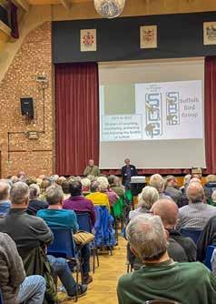 After arriving early to help set out the seating it was fantastic to see that almost every seat was taken in a packed hall, with many founding members present, to hear SBG President John Grant describe how it all began when a series of lectures by Bill Payn titled ‘The Birds of Suffolk’ encouraged Ivor Murrell, Malcolm Bowling, Robin Hopper and the late Ken Carlisle to find out more about birds and birding in Suffolk. The legacy of those first meetings in east and west