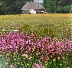 Zambia and combined sympathy with expert advice. He also gave us three Black Poplar seedlings, now giant trees. That was 1973 and ever since then we have followed his recommended regime of a late cut for hay followed by grazing by sheep. This led to a recovery and the return of many species including various orchids, Snake’s-head Fritillaries, Yellow Rattle and Ragged Robin.