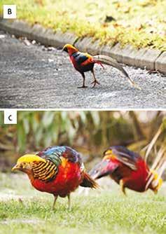 benefitting from intense predator control, supplementary feeding, and optimal habitat, was unable to persist. It therefore seems that releases, to a large extent, were keeping the UK’s Golden Pheasant population afloat. Now that such releases are much rarer (they are now illegal), the population is in terminal decline. If the number of Golden Pheasants at Site A increased substantially in the future, this would almost certainly signify a new release regime rather than a sudden increase in the population size. Despite this, one of our camera traps caught a male displaying to the female, which means Golden Pheasants might hang on at the site for a few more years!
