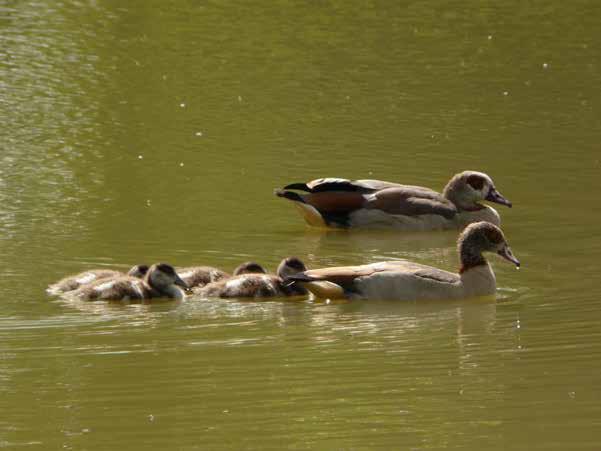 In 2015, Greylag geese commandeered our duck island and the Egyptians were not seen until August, when they returned with five fledged offspring. It was a very busy time, and quite noisy.