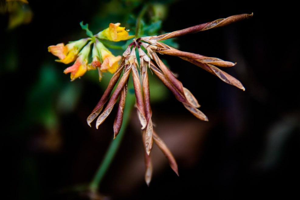 There are several references to birds, with the seeds of Bird’s-foot (Ornithopus perpusillus) and Bird’s-foot-trefoil (Lotus corniculatus) looking like the claws on a bird’s foot, the central yellow spot in Bird’s-eye Primrose (Primula farinosa) considered by Gerard to resemble the eye of a bird and the roots of Bird’s-nest Orchid (Neottia nidus-avis) thought to look like the dense interwoven parts of a bird’s nest. But why Bird Cherry and Bird-in-a-bush? Other references to specific bird species include Crane’s-bills (Geranium sp.) and Stork’s-bills (Erodium sp.), which reference the shape of the seed pod, Cuckooflower (Cardamine pratensis), because it flowers at the same time as the cuckoo sings, and Goosefoots (Chenopodium sp.), because the leaves are similar to the footprint of a Goose. The English name Hawkbit (Leontodon sp.)