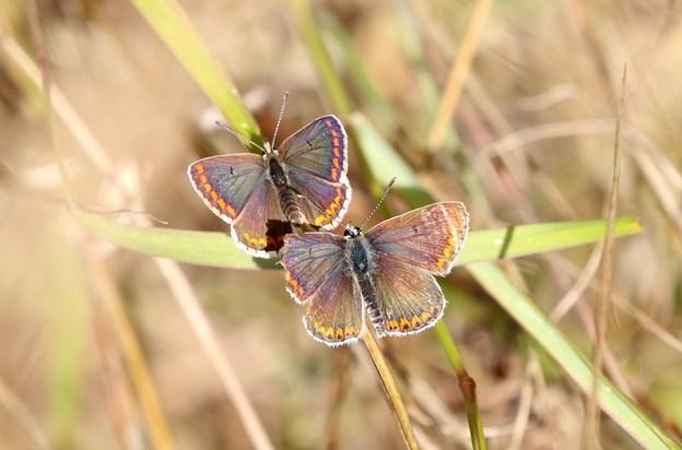 First brood Common blue (Polyommatus icarus) and Brown Argus (Aricia agestis) butterflies were seen but in ones and twos, yet second brood fared much better seeing 5 male