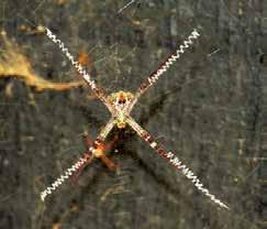 The wasp spider (4 – 15 mm) occurs in low vegetation. The main food source being grasshoppers. If the spider is not visible the tell-tale vertical silk zigzagging of the web is easy to spot. The colourful aptly named Signature spider of India has a more distinctive zigzag pattern in its web.