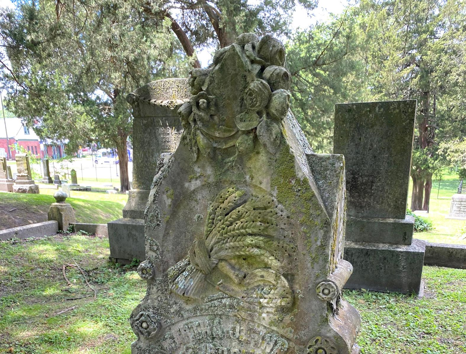 This beautifully carved stone honors “the only son,” Archibald Allen, who died at 20 years of age. Note the very specific flowers and leaves which decorate his tomb—morning glory, ivy, fern, thistle, daisy, and lilies. To the Victorian, each of these had meaning and the stone might literally speak of the family’s feelings for their beloved through flowers.