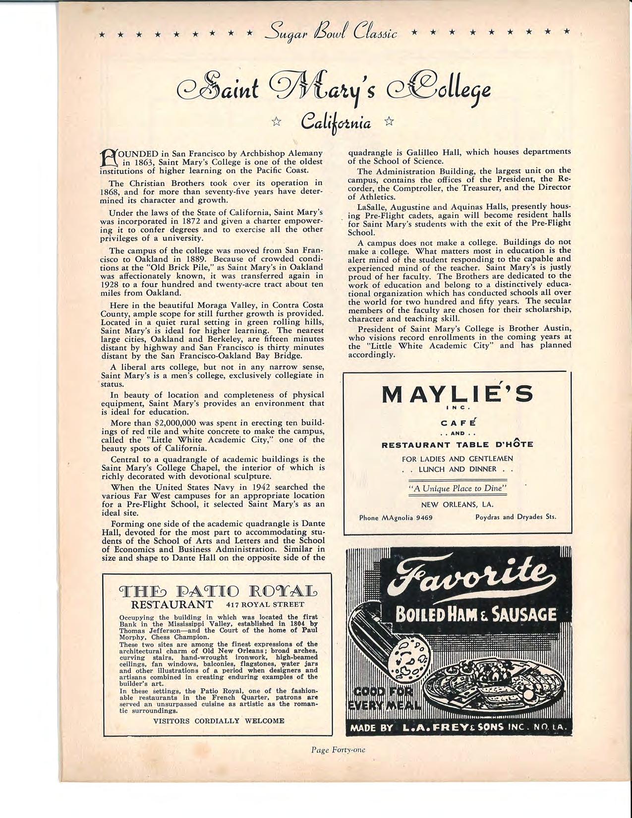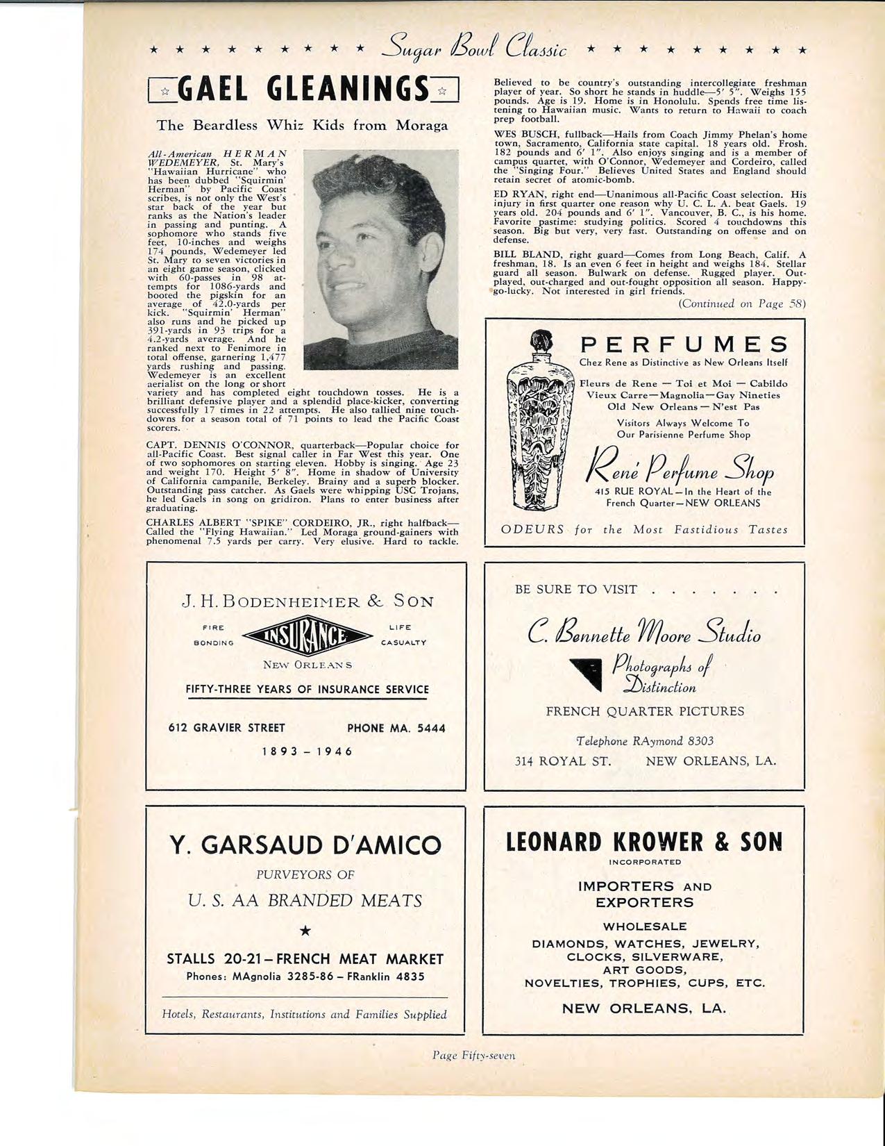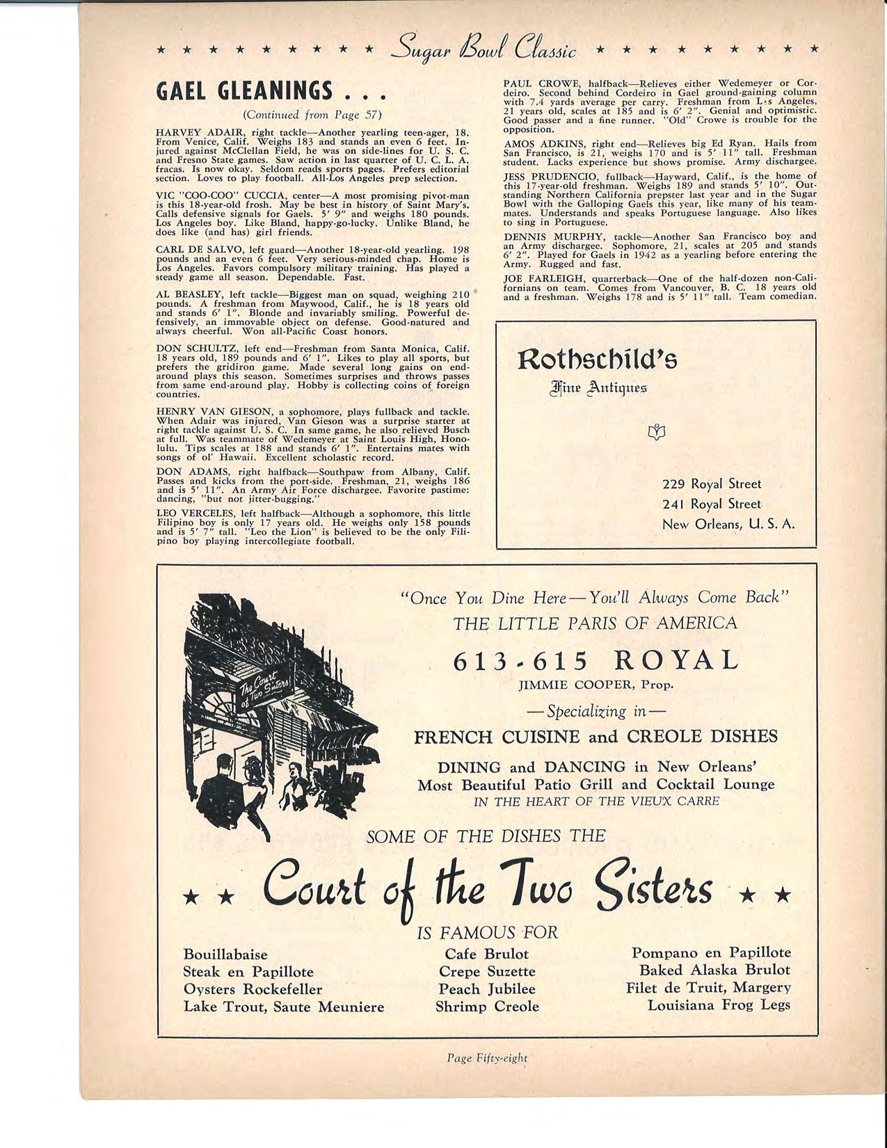 Oklahoma A&M was a team that started seven war veterans, including fullback Jim Reynolds who flew 52 missions over Germany, and tackle Bert Cole who had been shot down over Yugoslavia and spent months among the Chetniks while making his way back to allied lines. In contrast, St. Mary’s was a lot like Alabama in 1945 with seven 17-year-old starters on a team with an average age of 18-1/2.