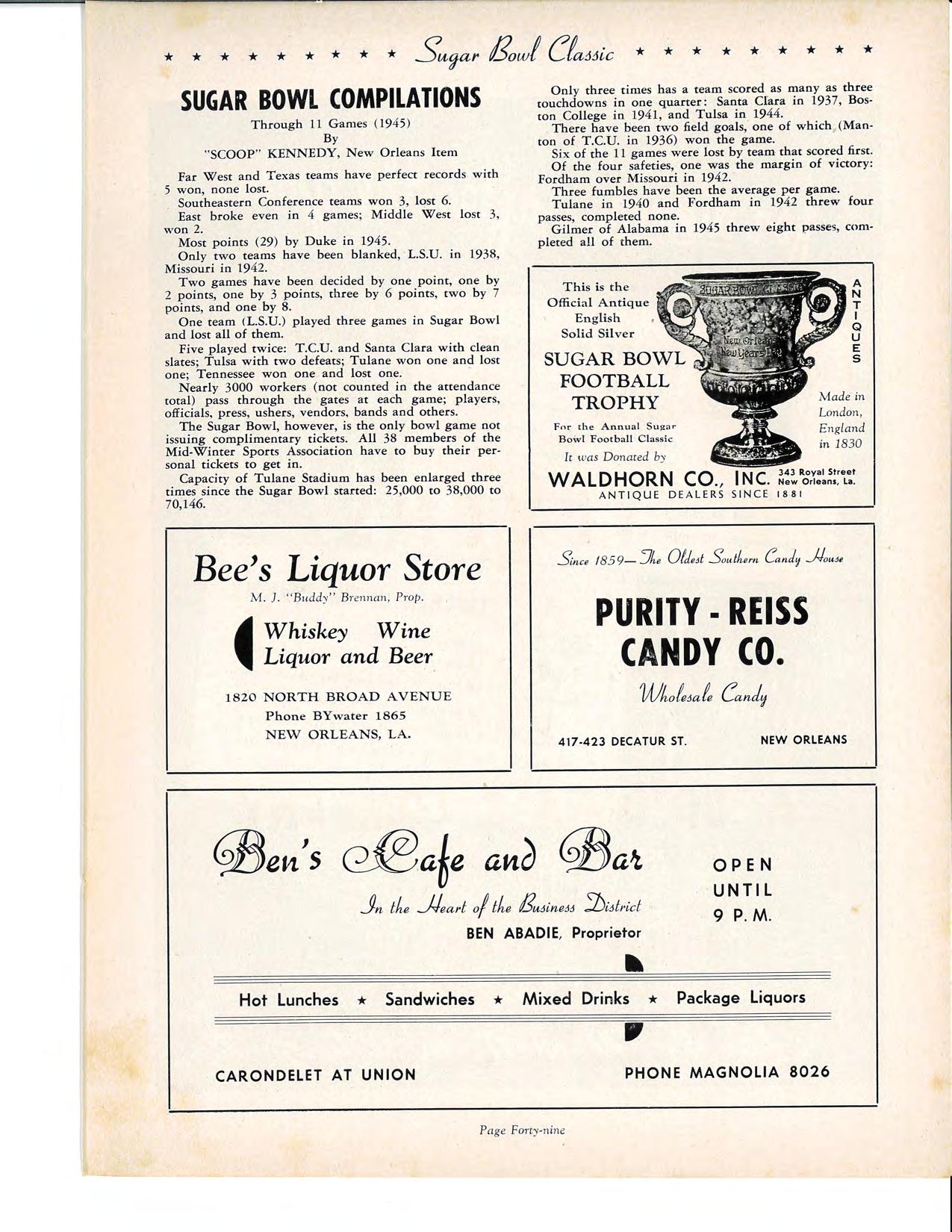 The Aggies’ Bob Fenimore led the nation in total offense for the second straight year. His two-season all-purpose yards average of 212.4 yards was better than those of recent Heisman Trophy recipients Frank Sinkwich or Tom Harmon or Glenn Davis.