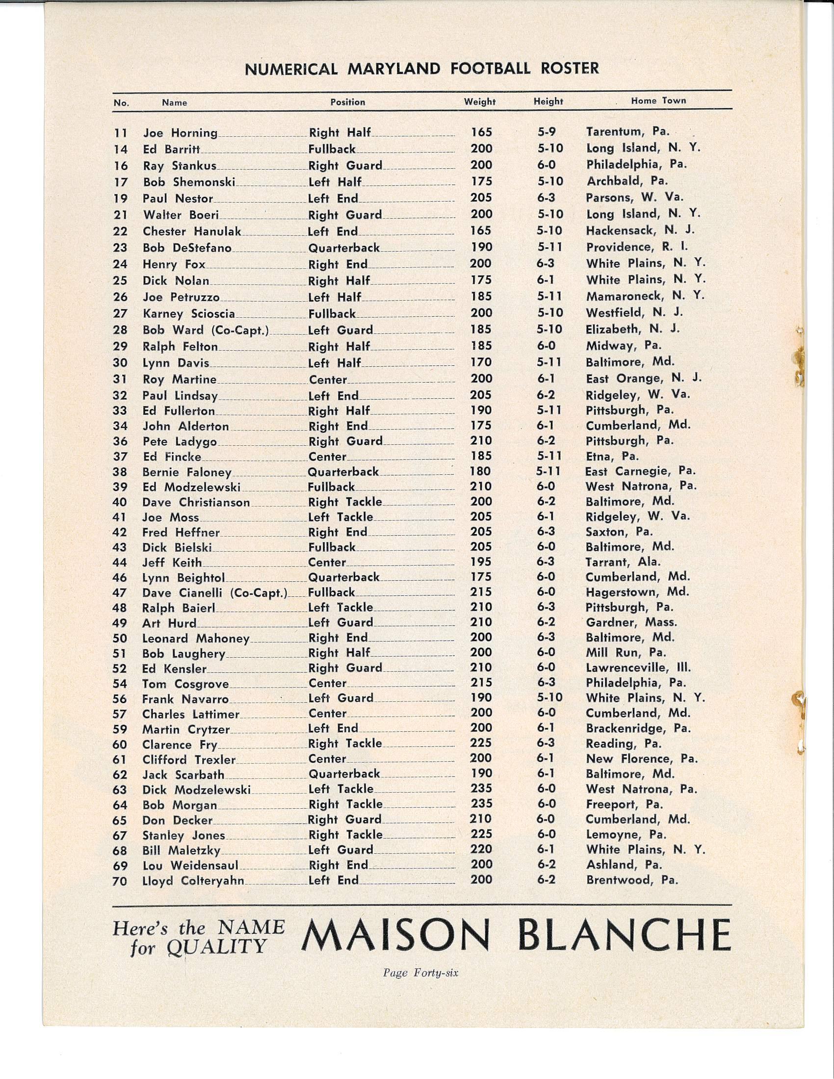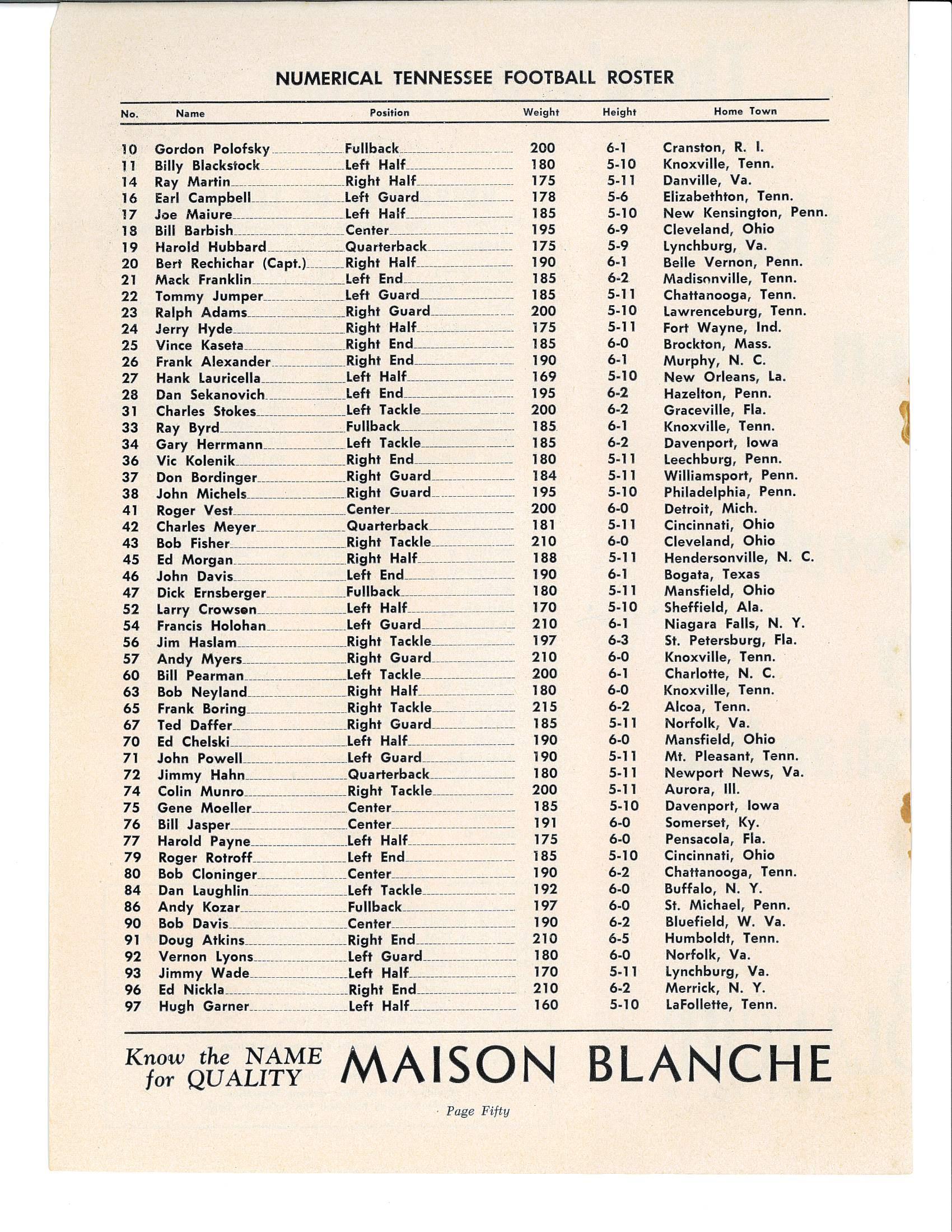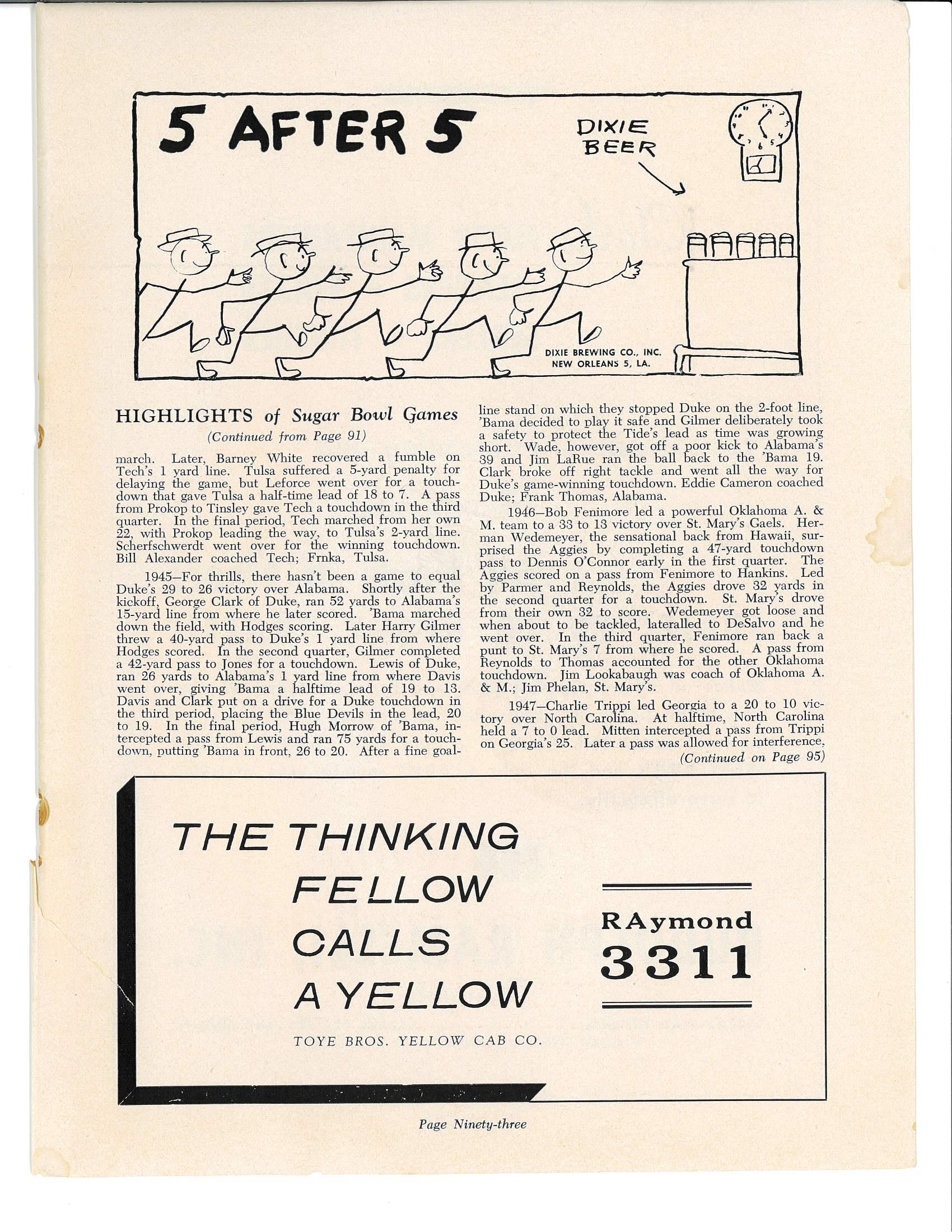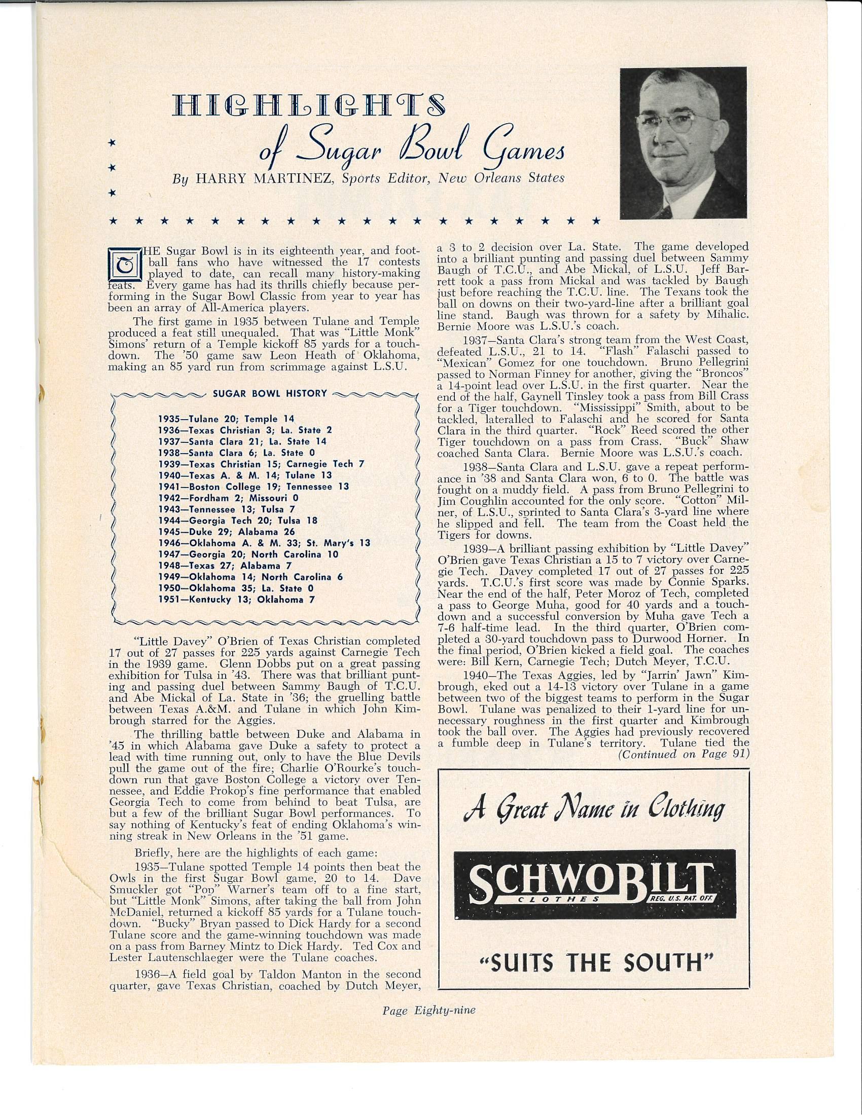 1952 Sugar Bowl Game Program - Maryland vs. Tennessee