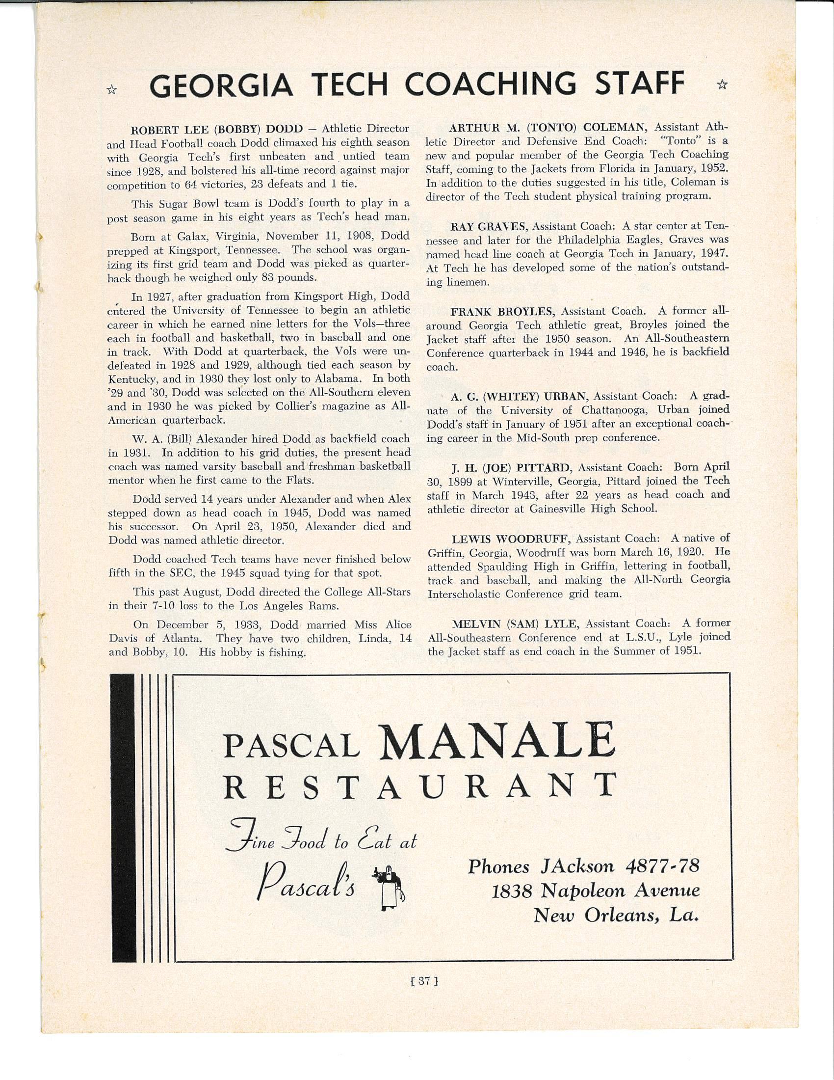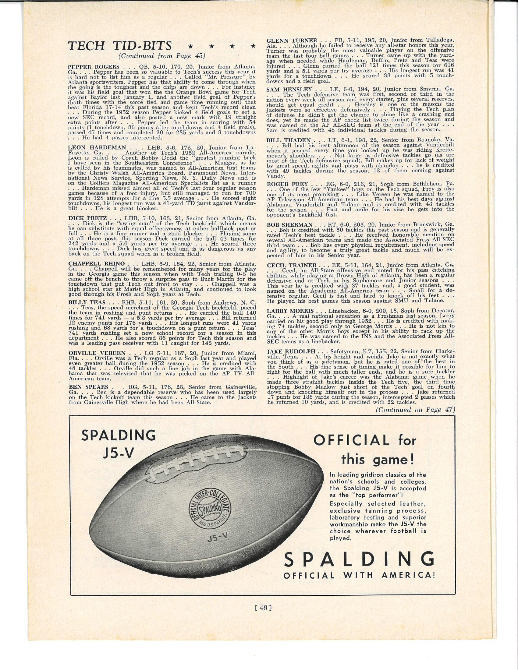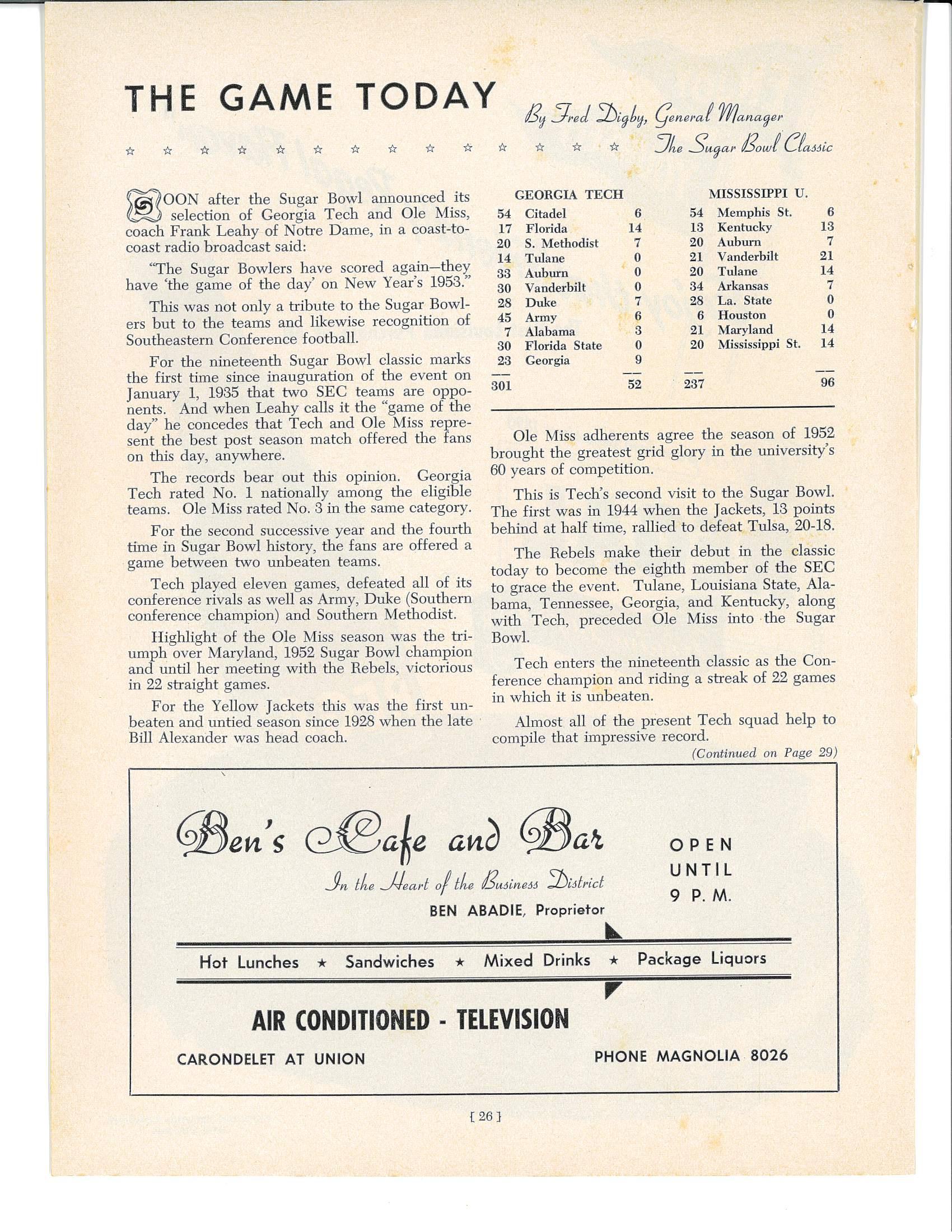 1953 Game Program - Georgia Tech vs. Ole Miss by sugarbowlnola - Issuu