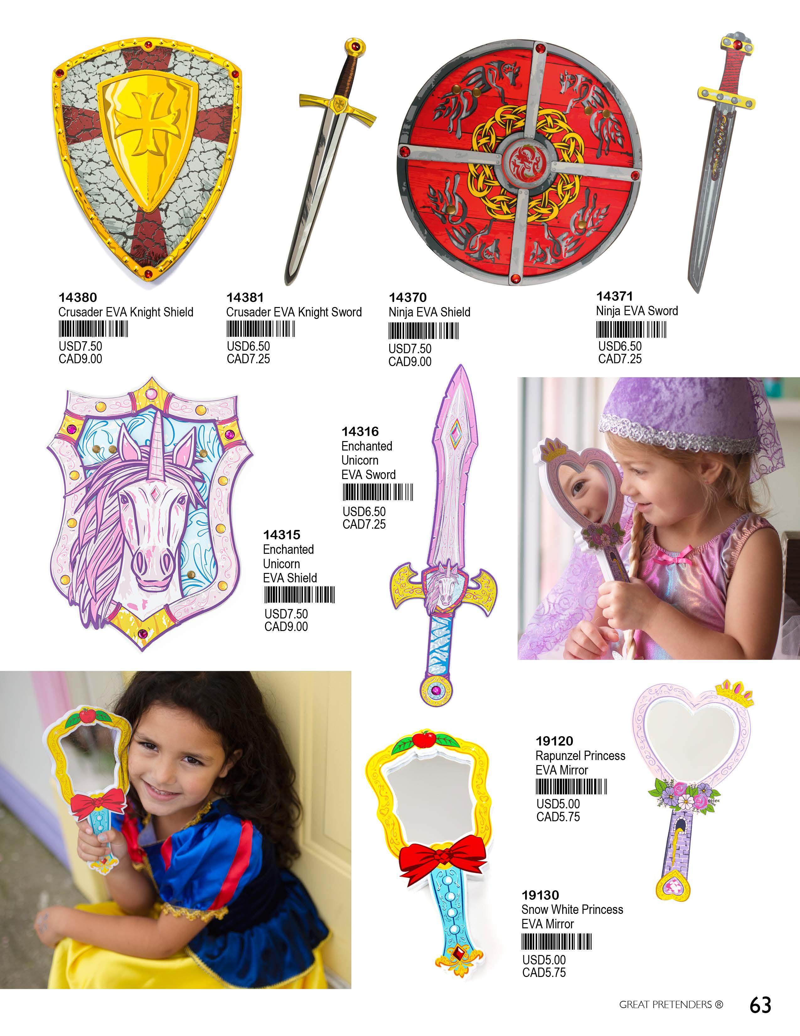 14380 CrusaderEVAKnightShield 111111111111111111111111111111 USD?.50 CAD9.00 14381 14370 CrusaderEVAKnightSword NinjaEVAShield 111111111111111111111 IllllllII 111111111111111111111 IIIIIIIII USD6.50 USD?.50 CAD?.25 CAD9.00 14315 Enchanted Unicorn EVAShield 111111111111111111111 IIIIIIIII USD?.50 CAD9.00 14316 Enchanted Unicorn EVASword 11111111111111111111111111111I USD6.50 CAD?.25 14371 NinjaEVASword 111111111111111111111 IIIIIIIll USD6.50 CAD?.25 r 19120 RapunzelPrincess '.tl EVAMirror 't 1111111111111111111111111111 II •~' d,~ USD5.00 CAD5.75 19130 SnowWhitePrincess EVAMirror 11111111111111111111111111111I USD5.00 CAD5.75 GREATPRETENDERS® 63