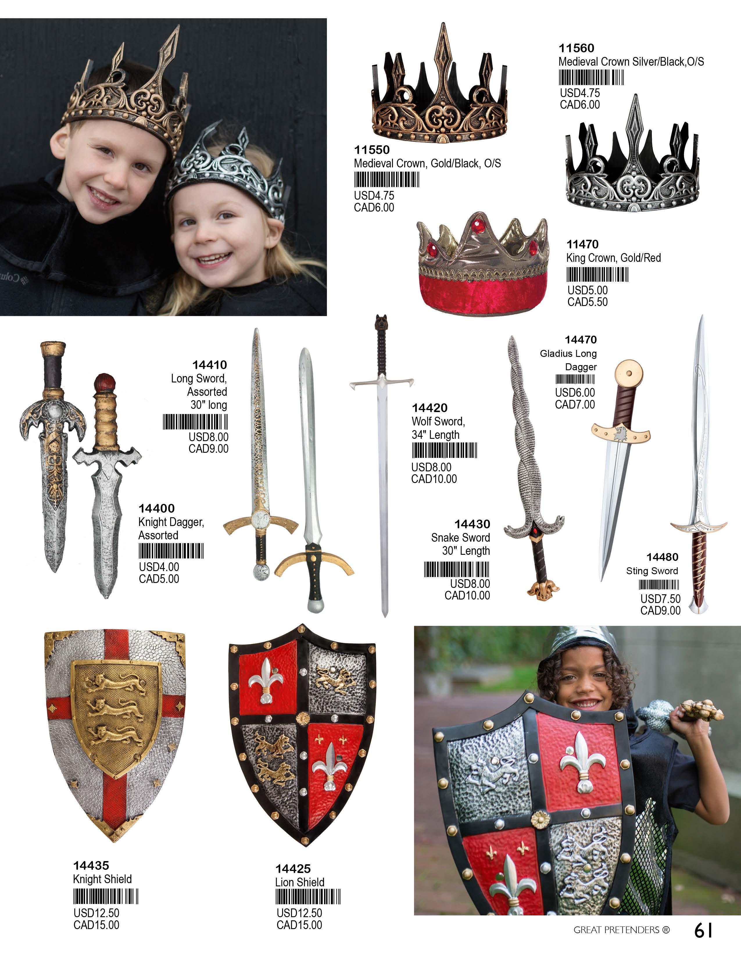 60 GREATPRETENDERS® 61955 61365 Brilliant Copper Knight Tunic Cape, Size 5-6 111111111111111111111111111111 USD20.00 CAD21.50 GoldenKnightwithTunic Cape& Crown,Size5-6 ~1~~1~1!1!~~111111111@ CAD18.50 61965 SilverKnightwithTunic Cape& Crown,Size5-6 ~l~~l~l!l!rnllll 111111@ CAD18.50