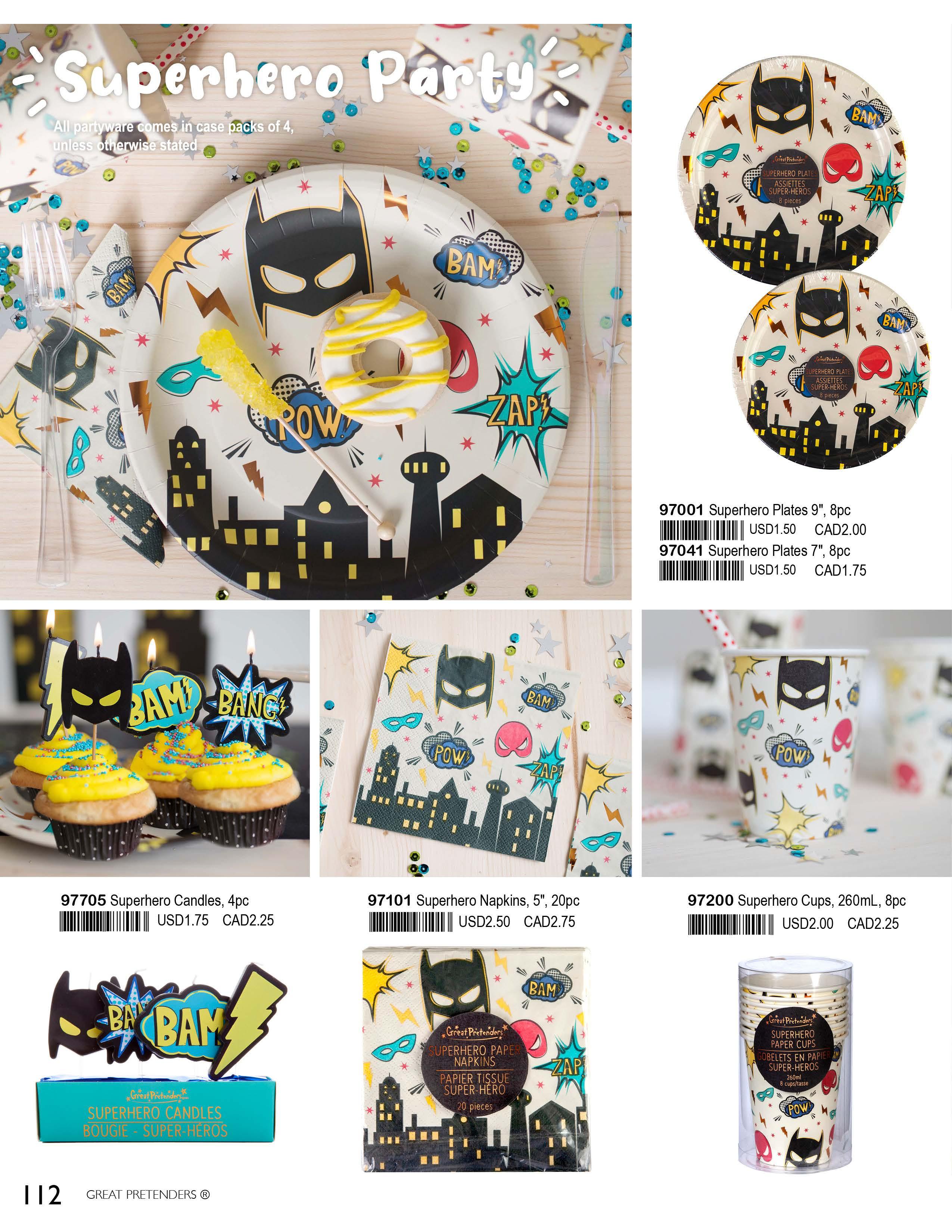 97005 SuperheroStarLargePlates 11",8pc 1111111111111111111IIIIIIIIIII USD1.50 CAD2.00 97205 SuperheroStarPaperCups 260ml, 8pc 1111111111111111111 IIIIIIIII II USD1.50 CAD1.50 97456 SuperheroStarTattoos,18pc(6Pk) 1111111111111111111 IIIIIIIIIII USD1.00 CAD1.25 GREATPRETENDERS® I I I