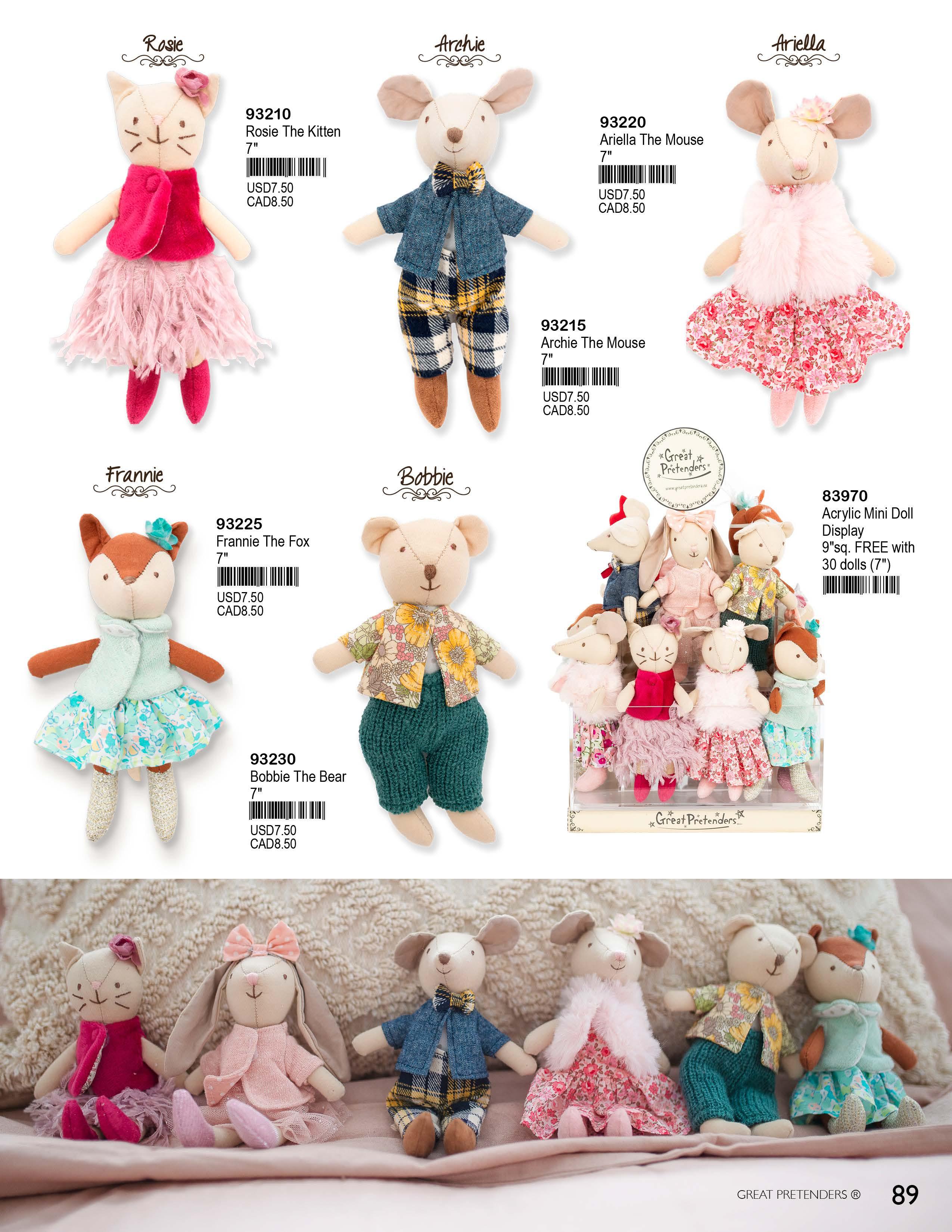 '-R.t,~ie -tl-rell,ie , . 93210 -J.,- RosieTheKitten 7" / ' '--" 111111111111111111111111111111 USD7.50 CAD8.50 Frannie tp,ofroie 93225 FrannieTheFox • 7" ' 111111111111111111111111111111 l USD7.50 CAD8.50 93230 BobbieTheBear '.,. 7" , ~111111111111111111111111111111 -~ USD7.50 ·~ CAD8.50 93220 AriellaTheMouse 7" 111111111111111111111111111111 USD7.50 CAD8.50 93215 ArchieTheMouse 7" 111111111111111111111111111111 USD7.50 CAD8.50 ,I [ .,,_Ct/eat_Pr,t,n'ders"! ..flrie& , ' j 83970 AcrylicMiniDoll Display 9"sq.FREEwith 30 dolls(7") 111111111111111111111111111111 "j ·"" GREATPRETENDERS® 89