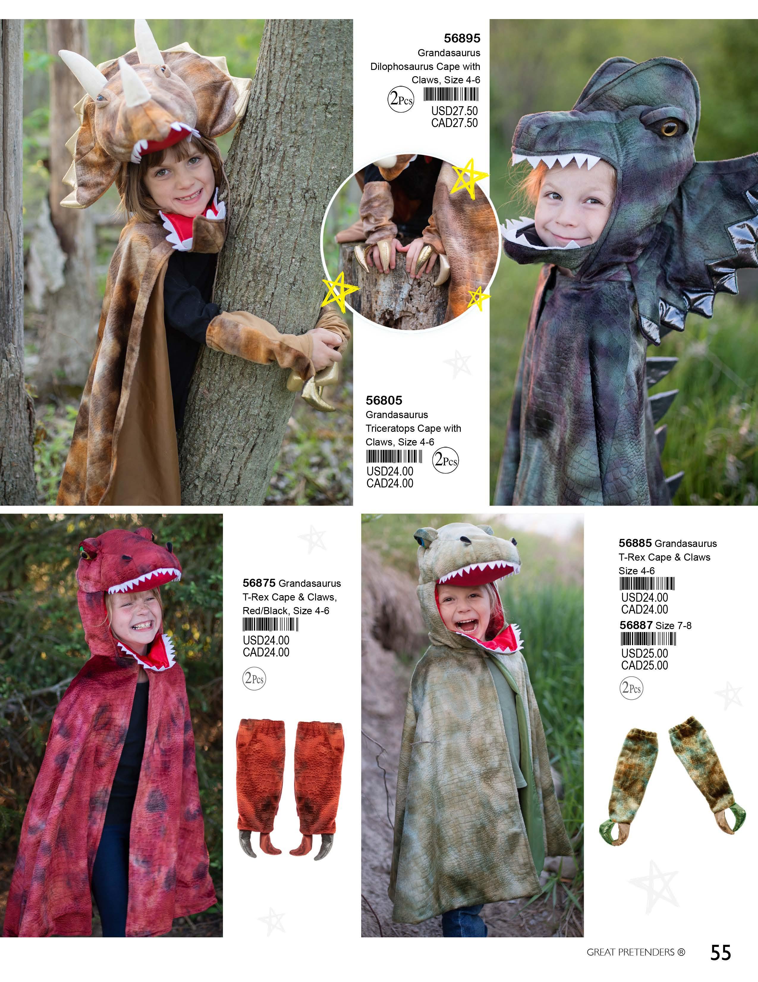 56875 Grandasaurus T-Rex Cape & Claws, Red/Black, Size 4-6 111111111111111111111111111111 USD24.00 CAD24.00 Grandasaurus Dilophosaurus Cape with Claws, Size 4-6 ~111111111111111111111111111111 USD27.50 CAD27.50 56805 Grandasaurus Triceratops Cape with Claws, Size 4-6 l11111111111111111111111111111~ USD24.00 CAD24.00 56885 Grandasaurus T-Rex Cape & Claws Size 4-6 l11111111111111111111111111111 USD24.00 CAD24.00 56887 Size 7-8 111111111111111111111111111111 USD25.00 CAD25.00 GREATPRETENDERS® 55