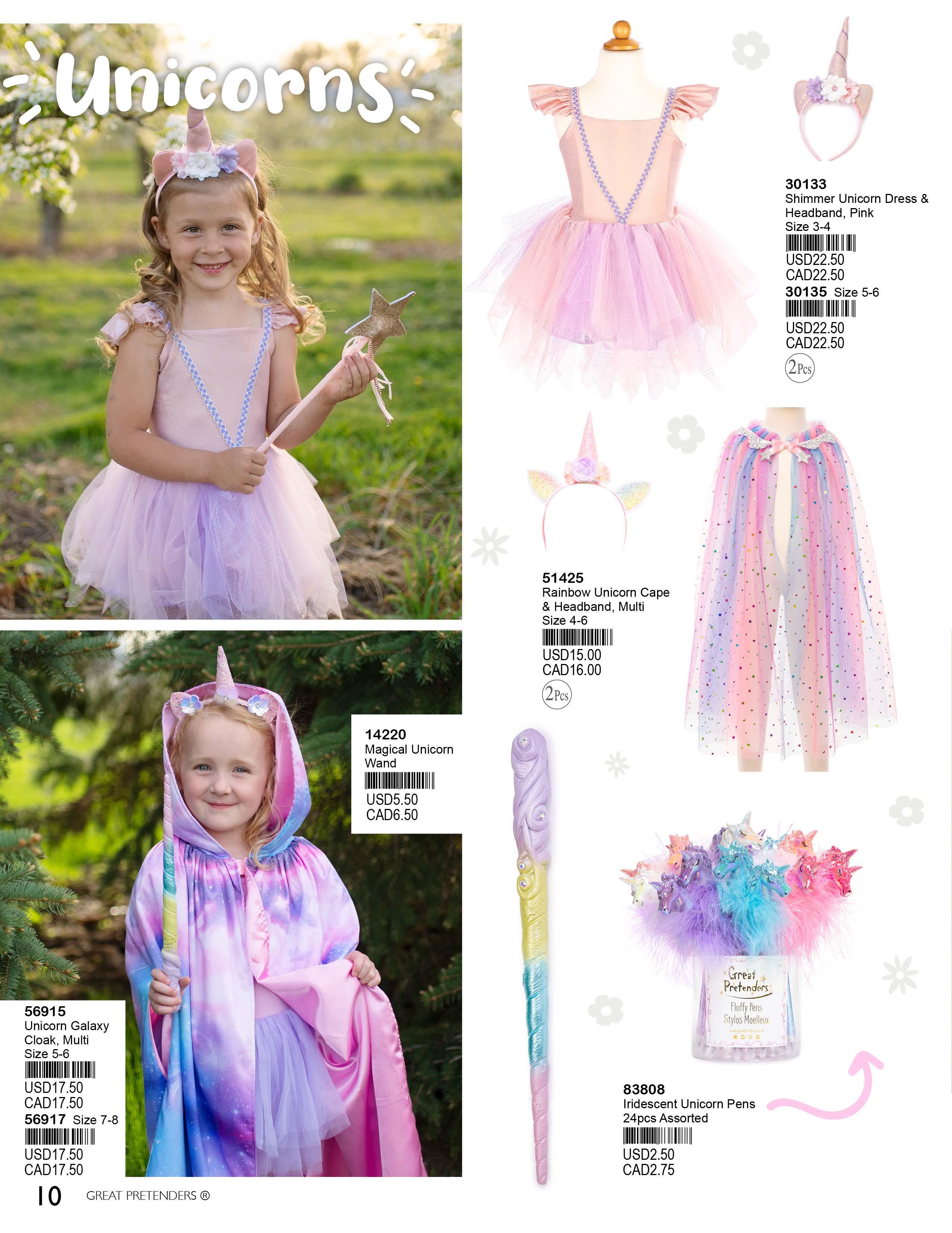 Unicorn Galaxy Cloak, Multi Size 5-6 111111111111111111111111111111 USD17.50 CAD17.50 56917 Size 7-8 111111111111111111111111111111 USD17.50 CAD17.50 1 o GREATPRETENDERS® Magical Unicorn Wand 111111111111111111111111111111 USD5.50 CAD6.50 51425 Rainbow Unicorn Cape & Headband, Multi Size 4-6 111111111111111111111111111111 USD15.00 CAD16.00 .. 30133 Shimmer Unicorn Dress & Headband, Pink Size 3-4 111111111111111111111111111111 USD22.50 CAD22.50 30135 Size 5-6 111111111111111111111111111111 USD22.50 CAD22.50 @ \ , . . ,• @ ,• . ••, ..... 83808 Iridescent Unicorn Pens 24pcs Assorted 111111111111111111111111111111 USD2.50 CAD2.75