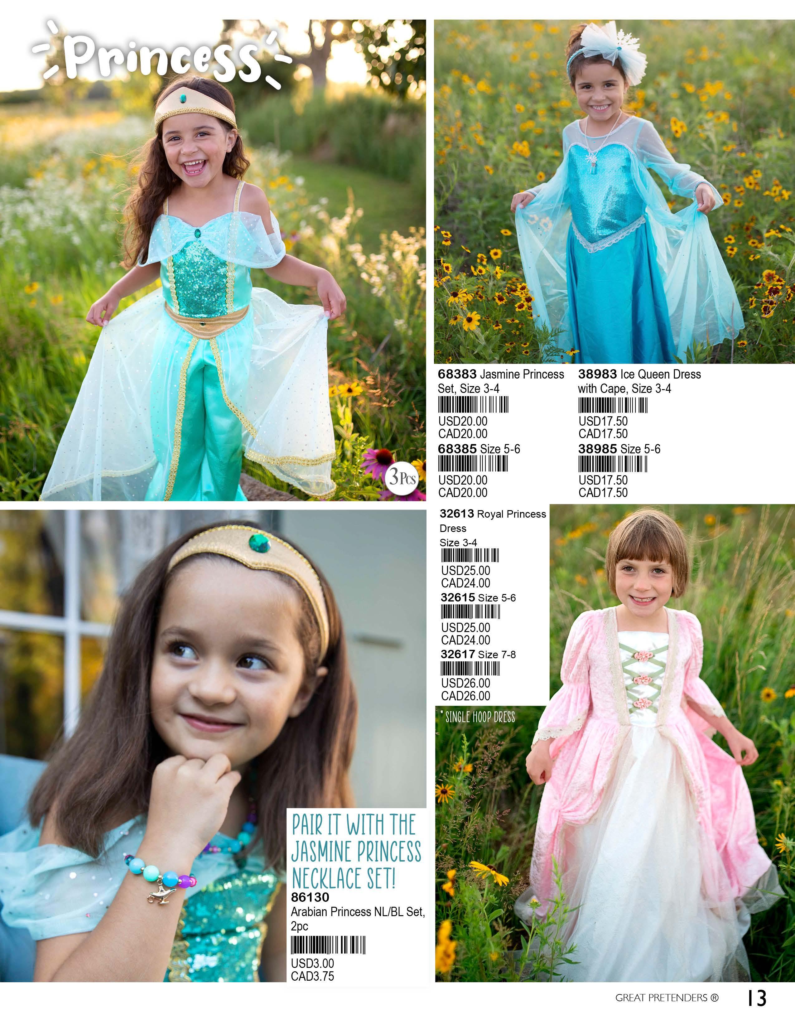 PAIRITWITHTHE JASMINEPRINCESS NECKLACE SET! ArabianPrincessNL/BLSet, 2pc 111111111111111111 II Ill llllIll 68383 JasminePrincess 38983 Ice QueenDress Set,Size3-4 withCape,Size3-4 11111111111111111111111111111111111111111111111 IllllllI IIIII USD20.00 USD17.50 CAD20.00 CAD17.50 68385 Size5-6 111111111111111111 IIIIllllllll USD20.00 CAD20.00 32613 Royal Princess Dress Size 3-4 111111111111111111111111111111 USD25.00 CAD24.00 32615 Size 5-6 111111111111111111111111111111 USD25.00 CAD24.00 32617 Size 7-8 111111111111111111111111111111 USD26.00 CAD26.00 38985 Size5-6 111111111111111111111111111111 USD17.50 CAD17.50 GREATPRETENDERS® 13