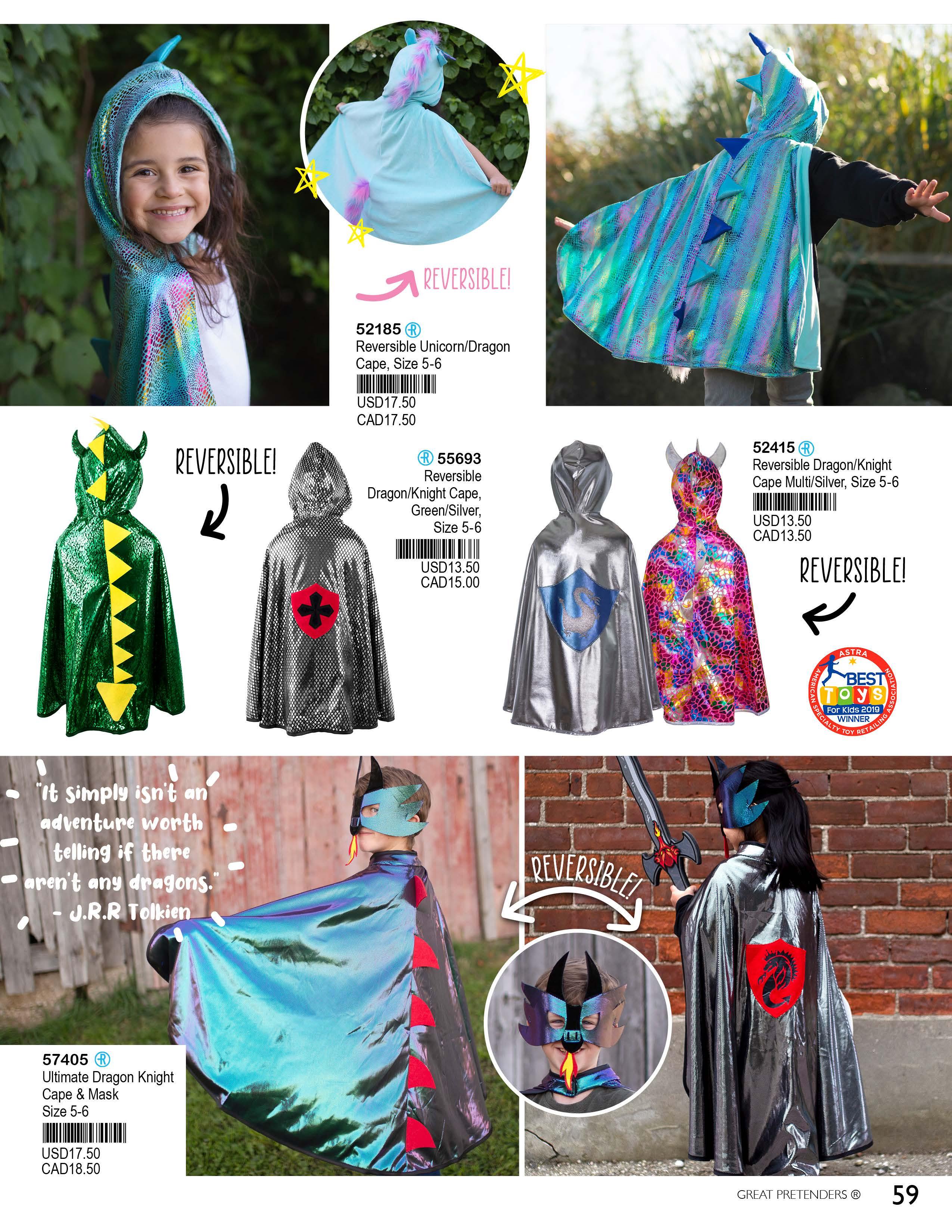 57405 ® UltimateDragonKnight Cape& Mask Size5-6 1111111111111111111 IIIIIIIIIII USD17.50 CAD18.50 REVEQSIBLE! J. QEVEQSIBLE! 52185® ReversibleUnicorn/Dragon Cape,Size5-6 111111111111111111111111111111 USD17.50 CAD17.50 ®55693 Reversible Dragon/KnightCape, Green/Silver, Size5-6 1111111111111111111111 Ill IIIll USD13.50 CAD15.00 52415® ReversibleDragon/Knight CapeMulti/Silver,Size5-6 111111111111111111111111111111 USD13.50 CAD13.50 REVERSIBLE!