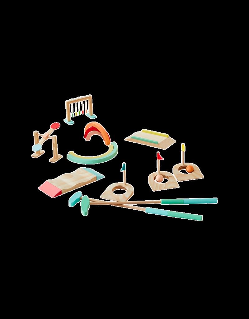 Balance Board $75 Good Wood Mini Golf Game $59 Soccer Foosball $100 Pinball $100 Unicorn Playhome $189 Hopscotch Play Mat $49 Greenhouse Play Home $220 Roadtrip Camper $199