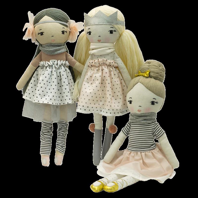 Tiny the Dinkum Doll $69 Dinkum Doll Travel Togs $36 Toaty Doll Trunk $17 Boy + Dog Plush Set $38 Blackboard Toy Pram $188 Dolly Cot $178 Dolly Moped $64 Mademoiselle Eglantine $58 Perfect Pal Dolls $45 Strolley $160