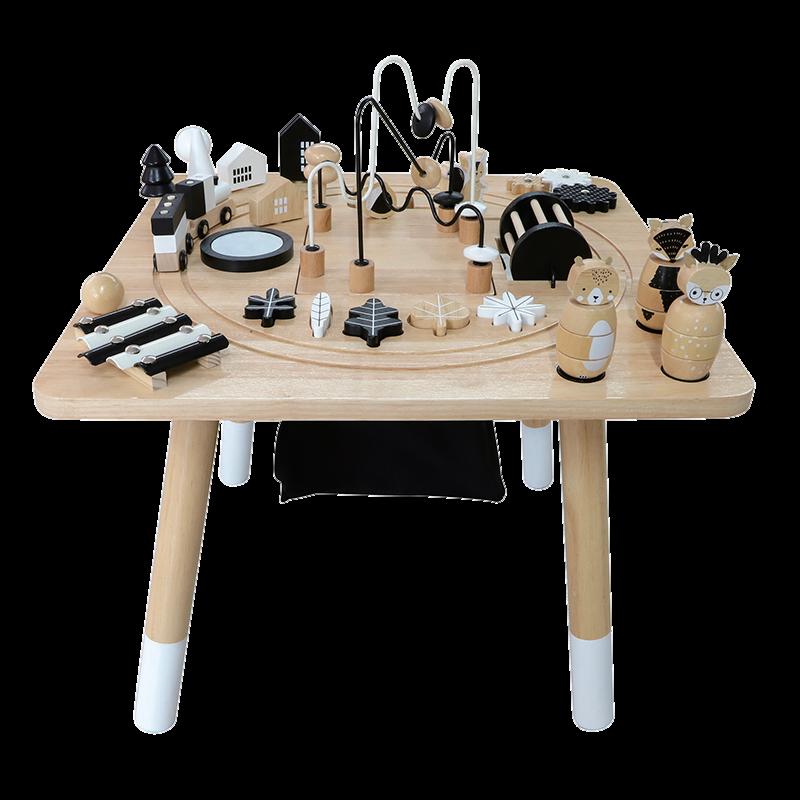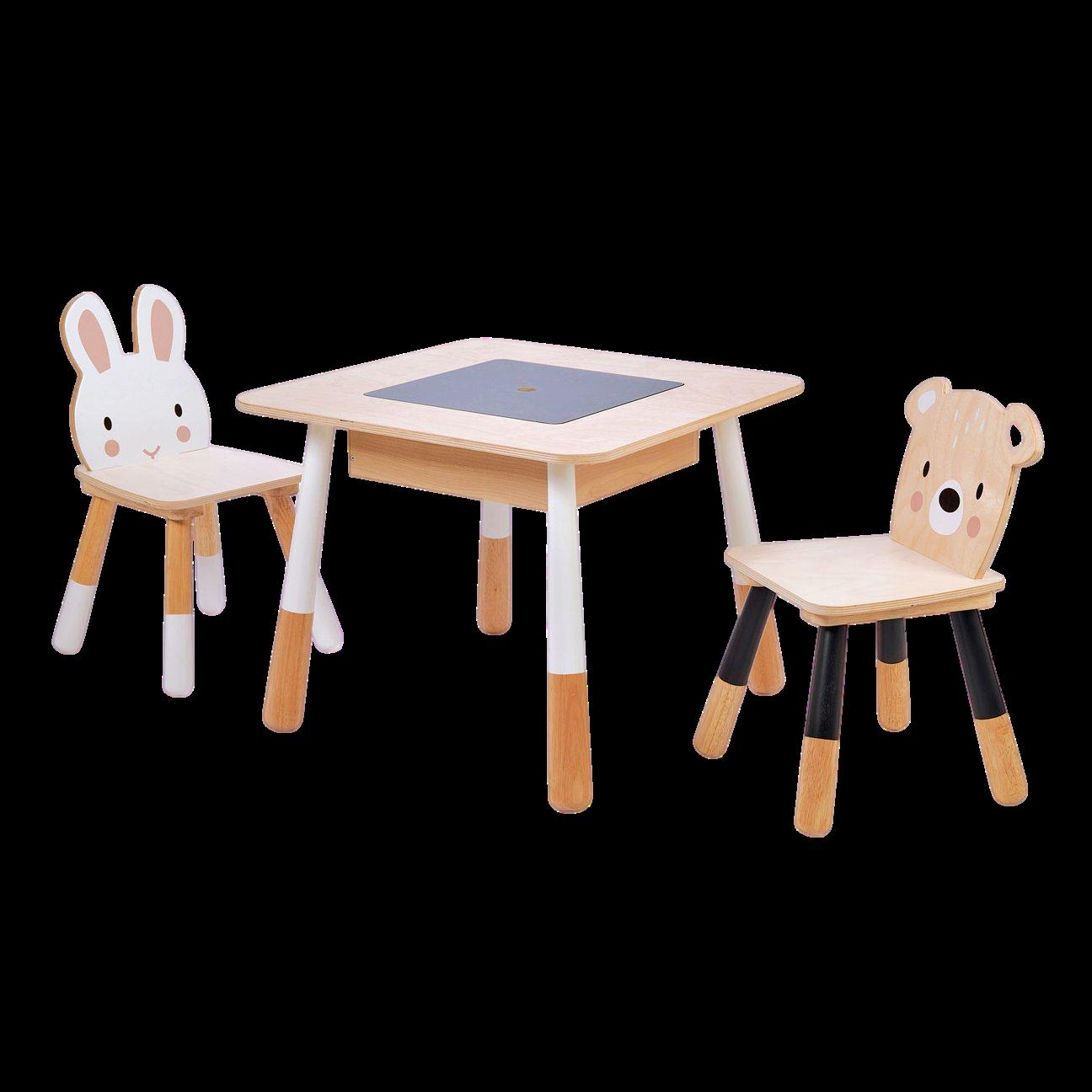 Forest Table + Chairs $210 Round Table $120 Table and Chair $170 Wooden Toy Box on Wheels $134 Bunny Ear Basket $158 Luggy Basket $90 Tummy Time Mat $74 Lion Table $98