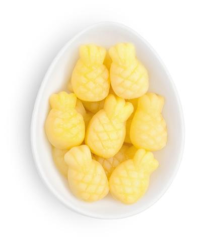 Smooth milk chocolate filled with a pineapple flavored coconut center.
