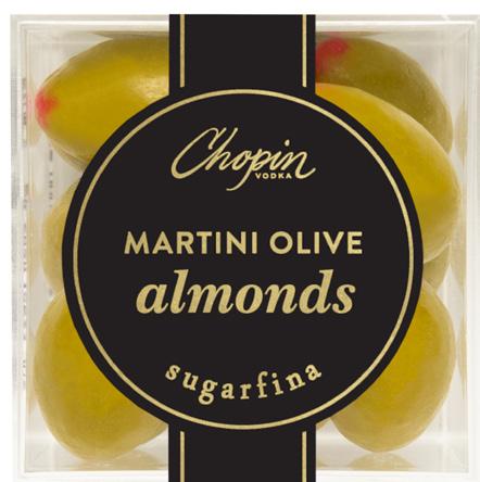 No olives here, just smartlydressed chocolate-covered almonds masquerading as cocktail garnishes.