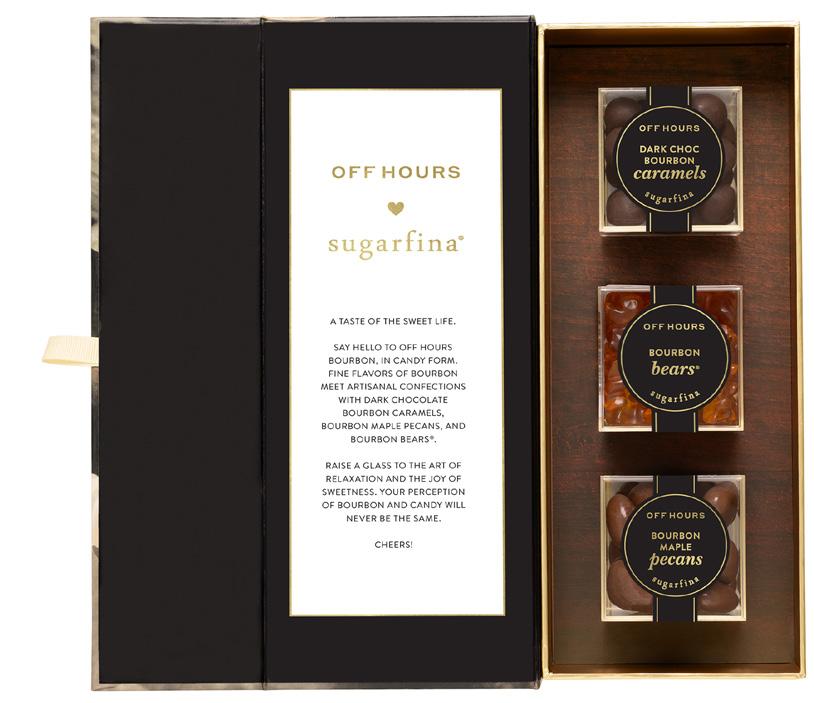 taste of the sweet life. Say hello to Off Hours Bourbon, in candy form. Fine flavors of bourbon meet artisanal confections with Dark Chocolate Bourbon Caramels, Bourbon Maple Pecans, and Bourbon Bears®.