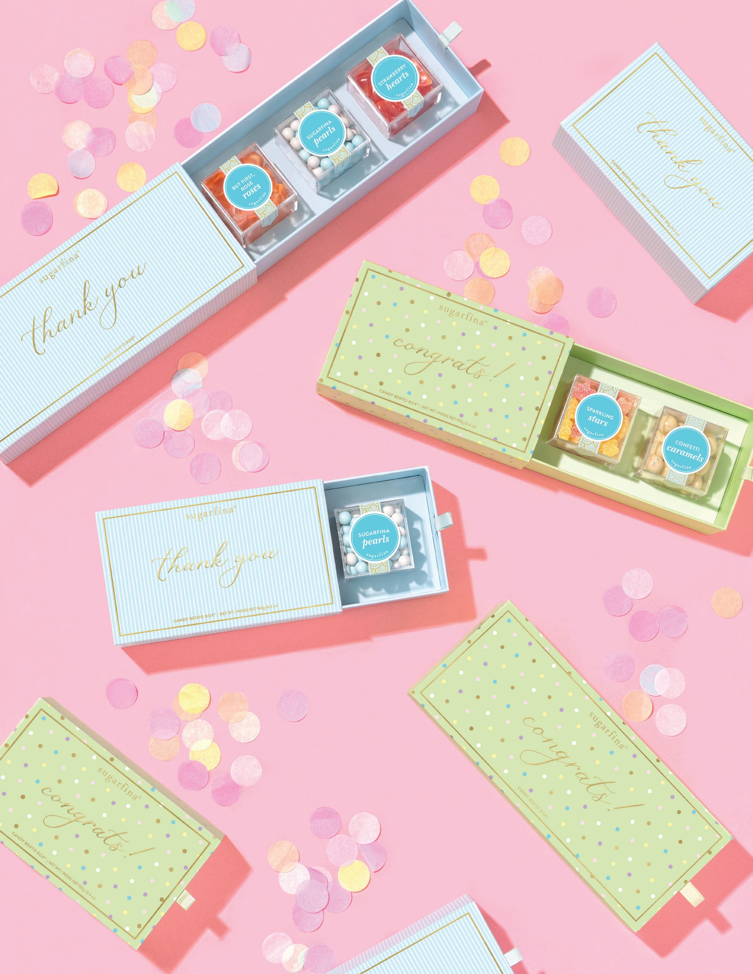 At Sugarfina, we travel the world to find the highest quality sweets and partner with artisan candy makers to create exclusive candies for our boutiques. From Paris and Greece to Japan and Germany, we find the most beautiful confections and package them in our signature candy cubes and candy bento boxes.