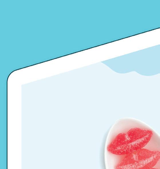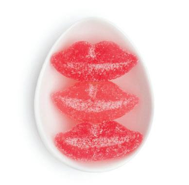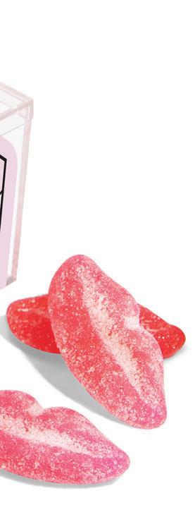 These kissably soft and chewy gummy lips in flavors of cherry, watermelon, and strawberry are dusted in sweet-andsour sugar crystals.