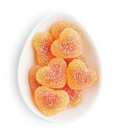 These sweet and tangy strawberry-flavored gummy hearts have a little love in every bite.