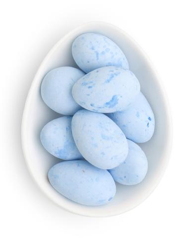 An assortment of French chocolates encased in a pastel blue gift box with gold-foil detailing. 9.92 x 7.17 x 1.2"