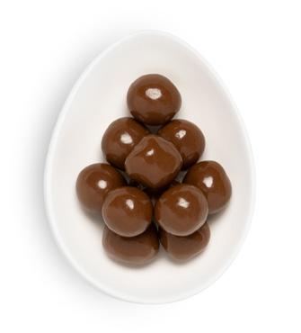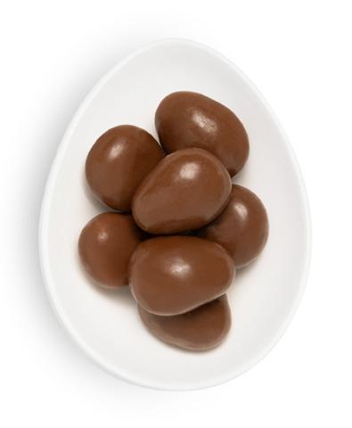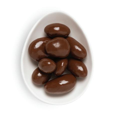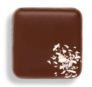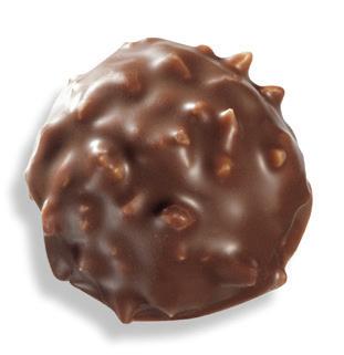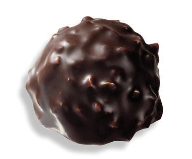 A crunchy shell of French milk chocolate and roasted almond pieces with a velvety center.