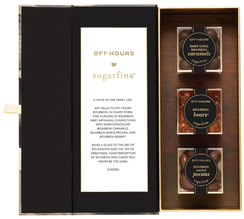 A taste of the sweet life. Say hello to Off Hours Bourbon, in candy form. Fine flavors of bourbon meet artisanal confections with Dark Chocolate Bourbon Caramels, Bourbon Maple Pecans, and Bourbon Bears®.