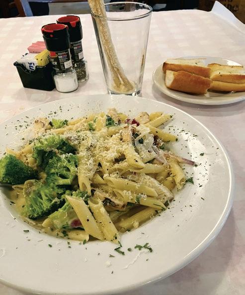 The pasta featured grilled chicken, broccoli and onions atop a bed of penne pasta in a garlic cream sauce.