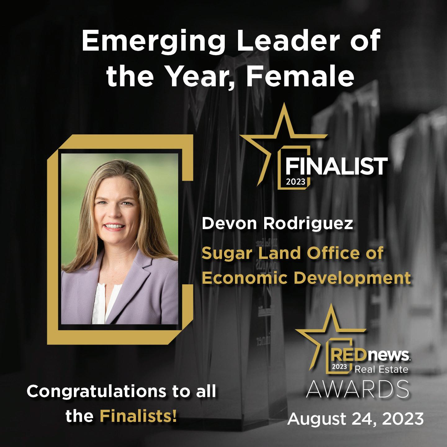 Devon Rodriguez, Director of Community Planning and Redevelopment was selected as a finalist for the 2023 Houston REDnews Awards’ Emerging Female Leader of the Year category. The award ceremony, hosted by REDnews, a national commercial real estate media outlet is held annually to recognize excellence in the commercial real estate industry.