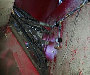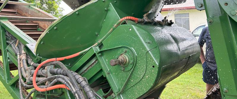 Prototype automatic spray unit to clean a commercial harvester to minimise RSD transmission.