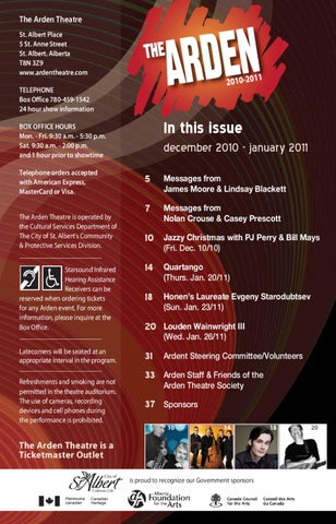 The Arden Theatre St. Albert Place 5 St. Anne Street St. Albert, Alberta T8N 3Z9 www.ardentheatre.com TELEPHONE Box Office 780-459-1542 24 hour show information