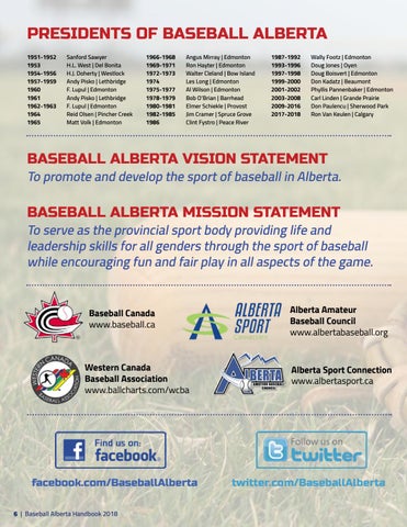 facebook.com/BaseballAlberta 6 | Baseball Alberta Handbook 2018