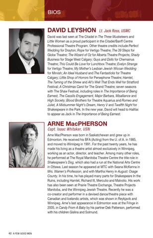 David was last seen at The Citadel in The Three Musketeers and Little Women as a proud participant in the Citadel/Banff Centre Professional Theatre Program. Other theatre credits include Perfect Wedding for Drayton; Rope for Vertigo Theatre; The 39 Steps for Globe Theatre; The Wizard of Oz for Alberta Theatre Projects; Shady Business for Stage West Calgary; Guys and Dolls for Chemainus Theatre; This Could Be Love for Lunchbox Theatre; Evelyn Strange for Vertigo Theatre; My Mother’s Lesbian Jewish Wiccan Wedding for Mirvish; An Ideal Husband and The Fantasticks for Theatre Calgary; Little Shop of Horrors for Persephone Theatre; Hamlet, The Taming of the Shrew and All’s Well That Ends Well for Stratford Festival; A Christmas Carol for The Grand Theatre; seven seasons with The Shaw Festival, including roles in The Importance of Being Earnest, The Cassilis Engagement, Major Barbara, Misalliance and High Society; Blood Brothers for Theatre Aquarius and Romeo and Juliet, A Midsummer Night’s Dream, Henry V and Twelfth Night for Shakespeare in the Park. In the new year, David will head to Halifax to appear as Jack in The Importance of Being Earnest.