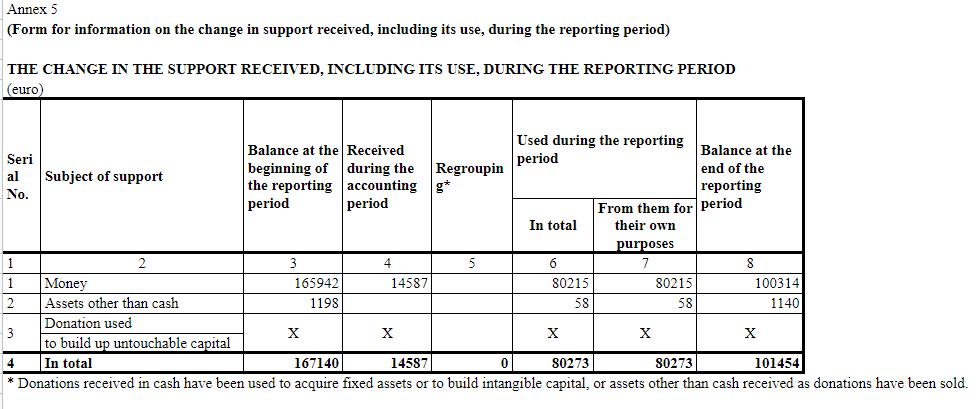 In the reporting year, the Fund received a subsidy of EUR 1,082.11 from the Employment Service under the Ministry of Social Security and Labour of the Republic of Lithuania for the wages of employees who were placed on lay-off in the event of an outage as defined in Article 47(1)(2) of the Labour Code.