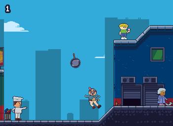 Un pizzaiolo con una padella? Tranquilli, la padella serve solo per colpire, uno dopo l’altro, i simpatici cittadini! Tempismo e abilità! Eretico.