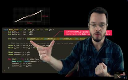 Gustavo Pezzi, l’autore delle lezioni, vi mostrerà come configurare l’ambiente di sviluppo creando un make file ed installando le librerie SDL; queste serviranno solamente come aiuto per creare un finestra e gestire l’input in maniera cross platform.
