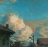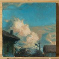 Prendiamo un mio dipinto a olio, qui sotto: è il tentativo di rappresentare un istante “interiore”, condizionato da un’impressione del momento. Non tenta di sostituire la realtà. Quindi la narrazione non è “due case, un cielo, degli alberi, dei pali della luce”, ma è il