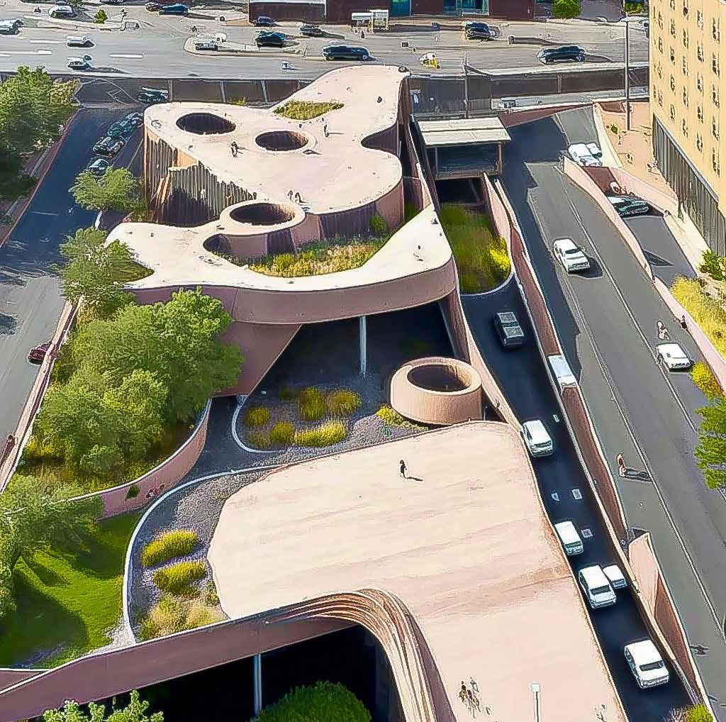 The Dougherty Arts Center (DAC), once a beacon of creativity and community, now stood weathered and worn. This was the challenge Clyde and I eagerly embraced as we set out to design its expansion. Our first visit to the DAC revealed its run-down state but also sparked our imagination. Stepping into the courtyard, we sensed a potential axis that could breathe new life into the existing Butler buildings. Our vision took shape as we reimagined the gable roofs— merging them into one large gable on one side and a sweeping butterfly roof on the other. We sought to honor the architectural language of the Butler buildings while infusing the expansion with its own distinct identity. At the heart of our design was the preservation and celebration of the courtyard spaces, envisioned as vibrant hubs for local art and community engagement. The decision to remove the intervening spaces between the Butler buildings was pivotal, allowing the courtyards to take center stage. Material choices were guided by a commitment to longevity and integration. Corten steel, with its transformative properties, was selected to harmonize with the aging corrugated metal of the Butler buildings. Over time, oxidation will blur the boundaries between old and new, culminating in a seamless fusion of the two halves.