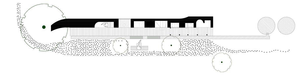 A single wall can become a room, a house, and as it meanders, a housing cluster. The idea of possession fades to be replaced by sharing, to facilitate the growth of a community.