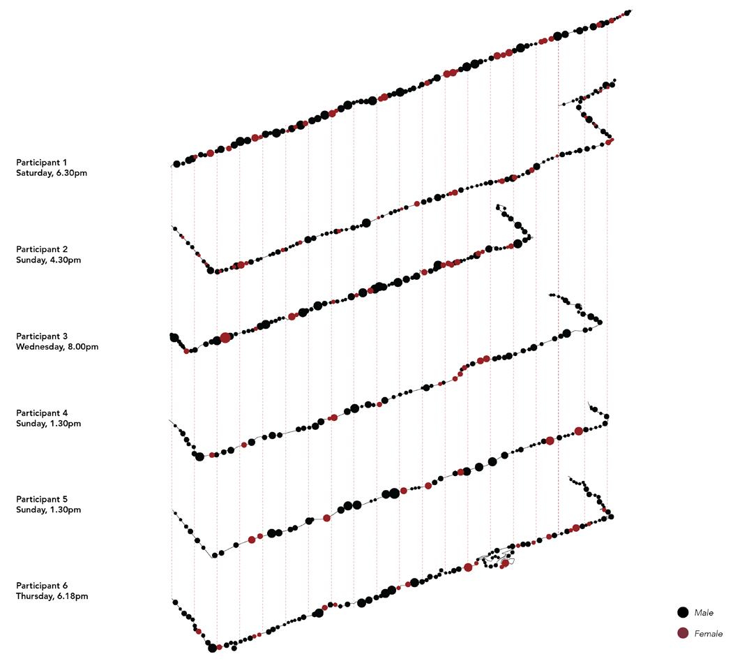 Participant 4 notes, “The men to women ratio was not at par, but being a woman on the main road I did not feel scared.”