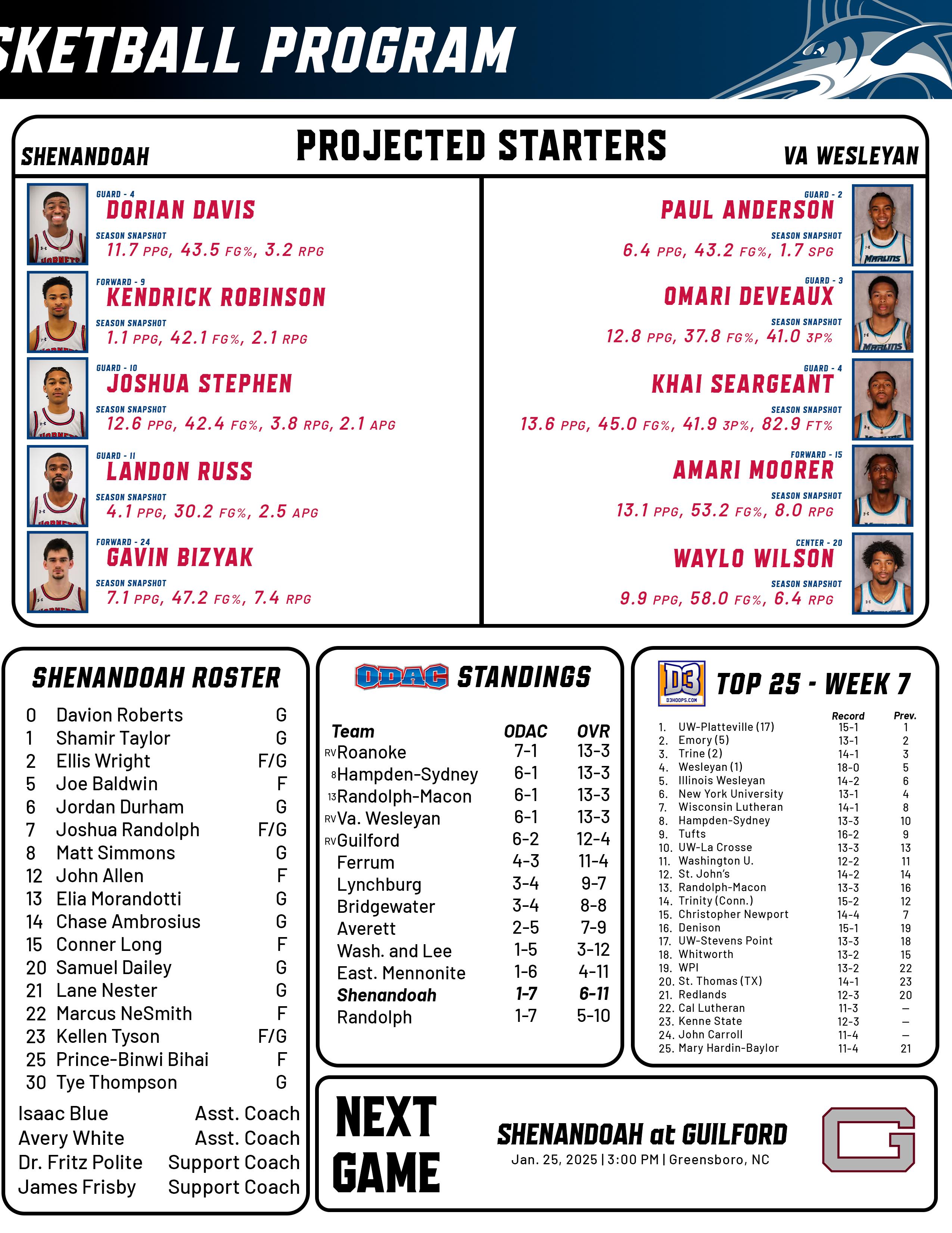SU Men's Basketball vs Virginia Wesleyan Gameday Program