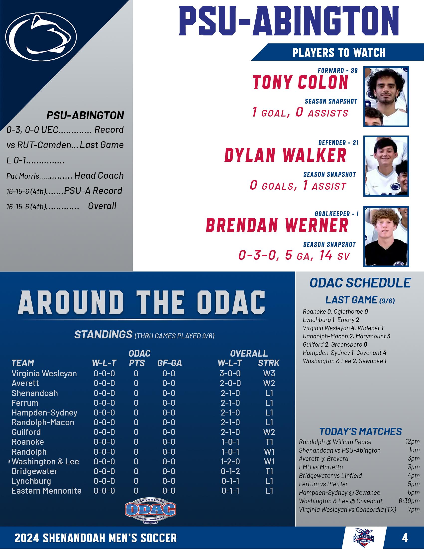 SU Men's Soccer vs Penn State Abington Gameday Program