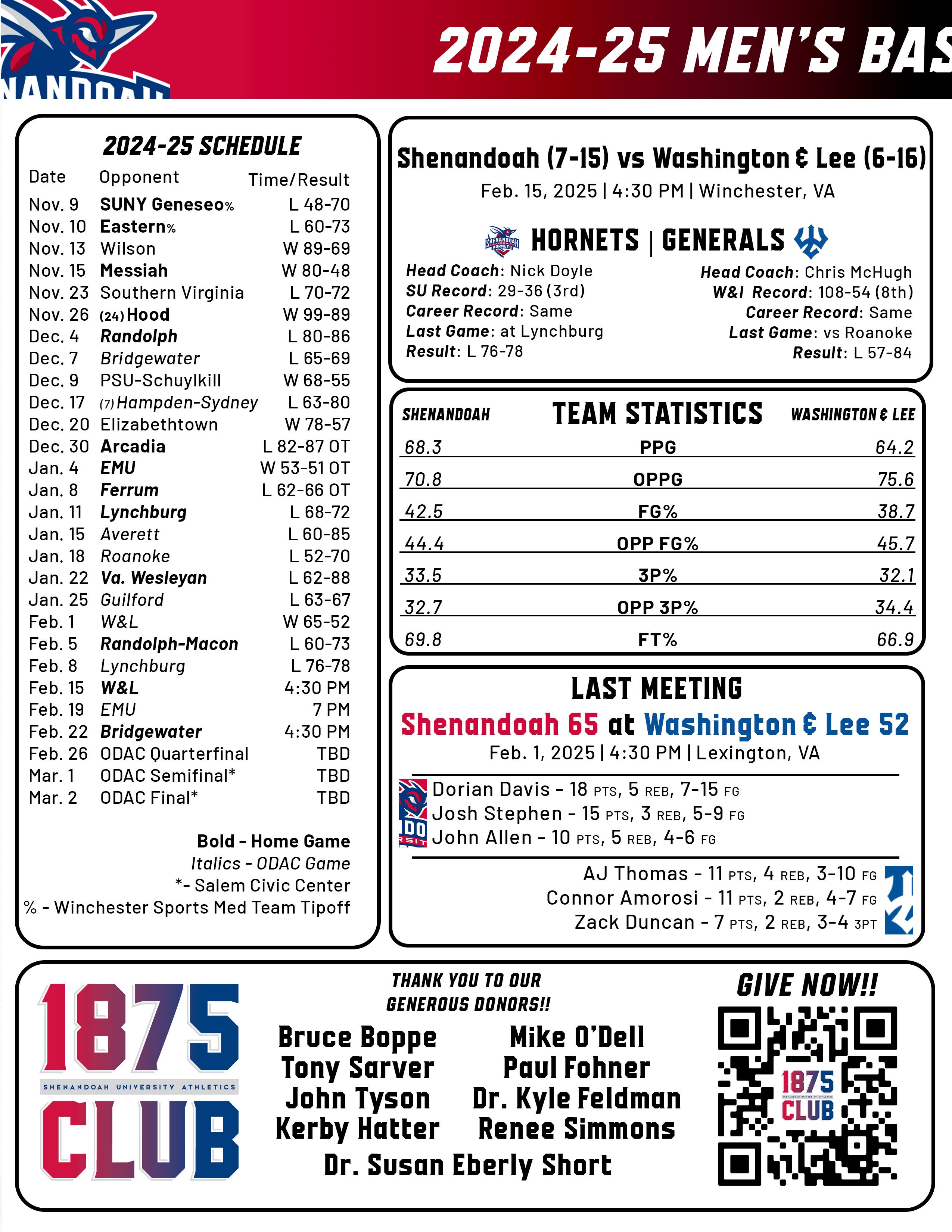 SU Men's Basketball vs Washington and Lee Gameday Program