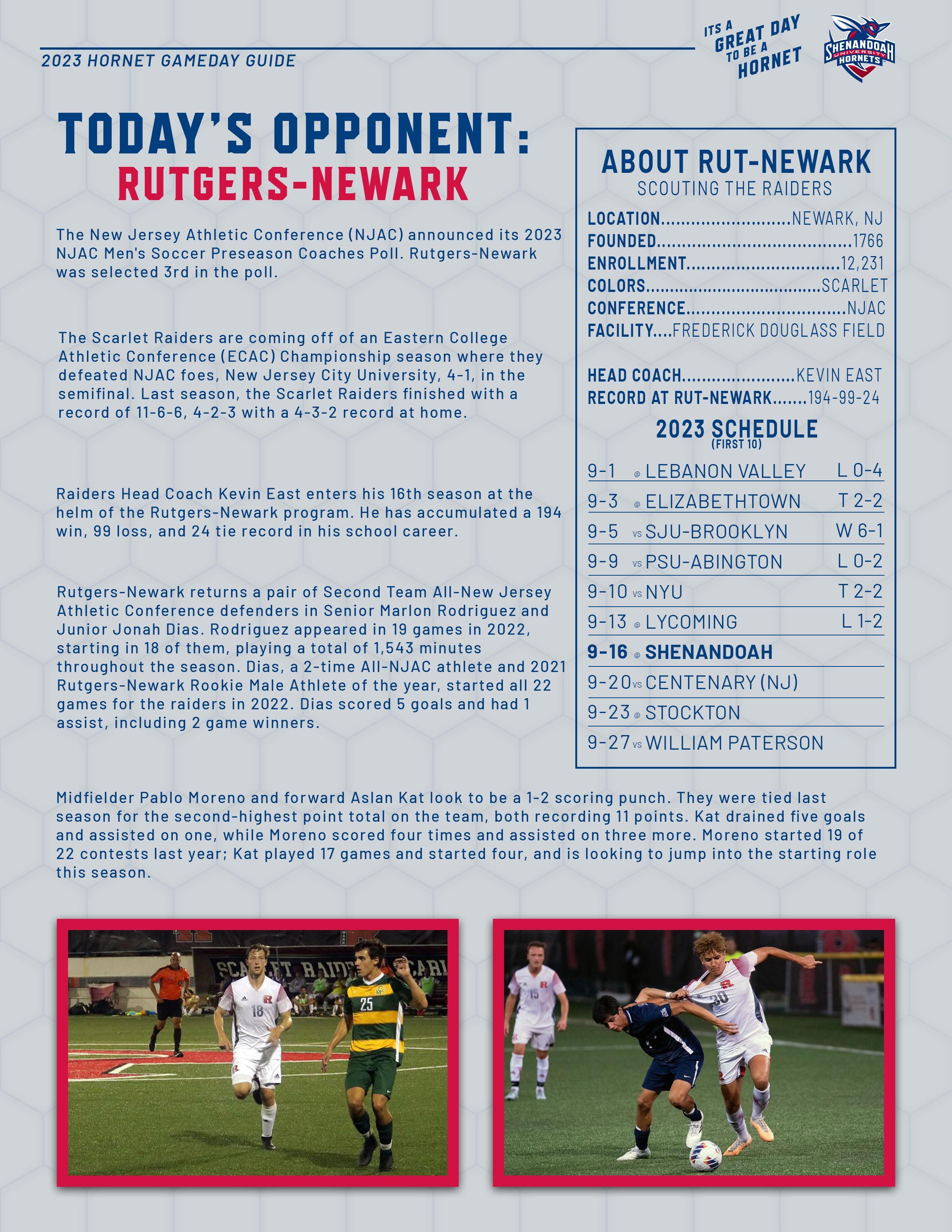 SU Men's Soccer vs Rutgers-Newark Gameday Program